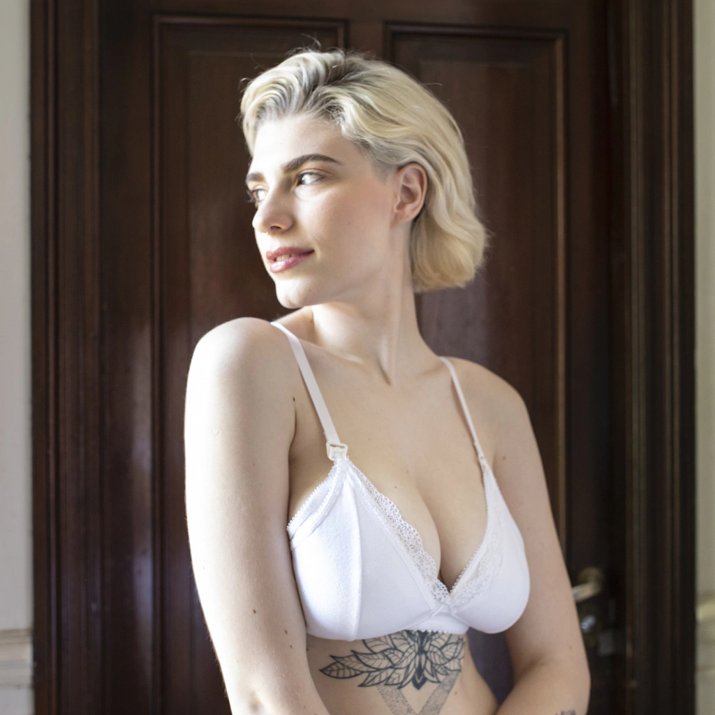 Corpiño de amamantar de algodón doble con puntilla en escote